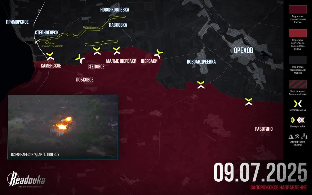 На Запорожском фронте ВС РФ зачищают очаги сопротивления ВСУ в Каменском. Артиллерия и дроны «утюжат» позиции противника в Плавнях, штурмовики продвигаются к этому селу вдоль берега Каховского водохранилища. Упорные бои идут в Малой Токмачке.