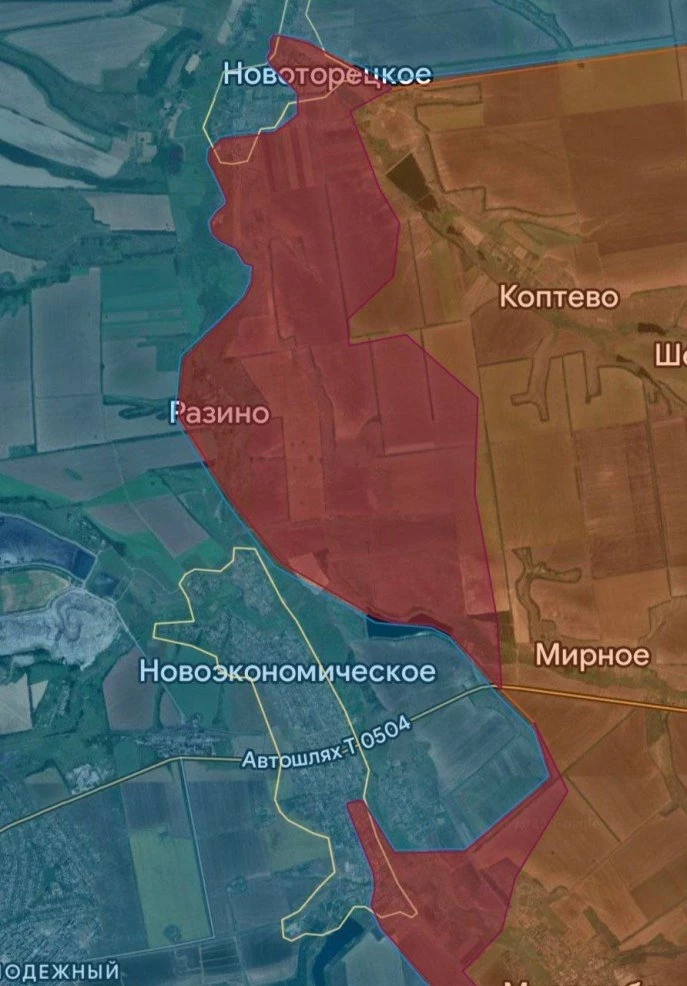 На западном фланге Торецкого направления усилились бои в Яблоновке. У ВС РФ есть продвижение в центральной части села, кроме того, наши части постепенно обходят село с севера и юга. Интенсивные бои на подступах в Александро-Калиново, ВС РФ берут под огневой контроль дороги из этого села. Идёт штурм позиций ВСУ в Щербиновке со стороны Леонидовки. Севернее Торецка идут бои в районе Белой Горы. В районе Нелеповки позиционные бои.