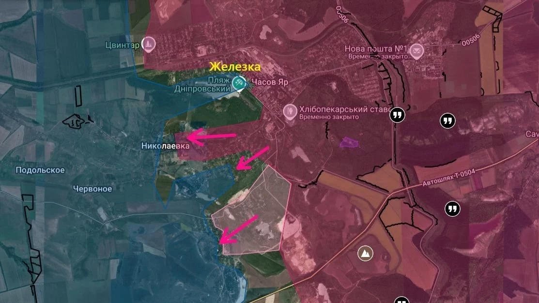 Сообщается, что российские подразделения ведут наступательные действия в южной части Попова Яра, а также оказывают давление на фланговых направлениях. Кроме того, российские войска предпринимают попытки прорвать оборону вблизи подходов к Русину Яру.