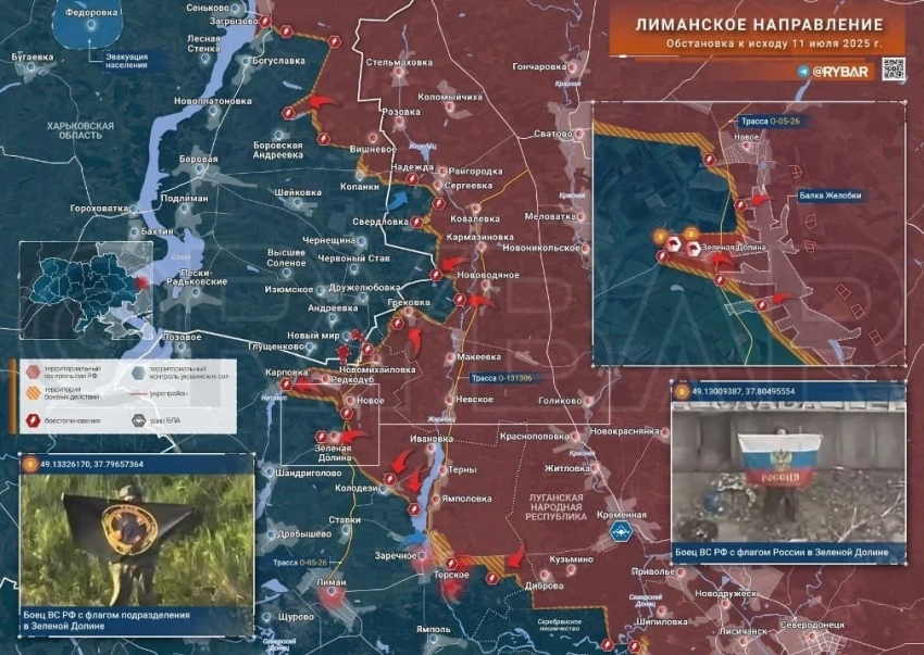 На Краснолиманском фронте наши восстановили контроль над частью позиций восточнее Торского. Аналитики сообщают, что, несмотря на заявление об освобождении этого села, оно не было под полным контролем наших войск, а «авансовые освобождения» лишь создают проблемы военным на фронте. Сегодня МО сообщило об освобождении Зелёной Долины. Наши войска развивают наступление на Среднее и к Шандриголово - важному узлу логистики ВСУ, контроль над которым отрежет ВСУ на Лиманском участке. Севернее по фронту противник контролирует большую часть Редкодуба, хотя ранее были сообщения, что наши бойцы выбили оттуда врага. Помимо этого, ВСУ подтягивают подкрепление к Карповке, сообщает Олег Царёв в Telegram-канале.
