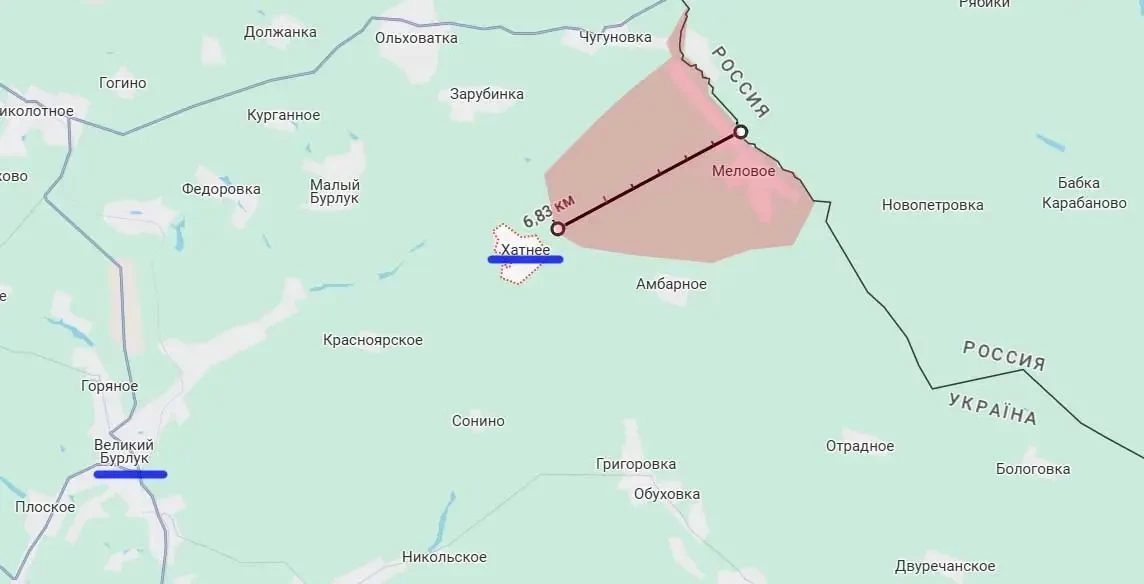 В результате успешных действий ВС РФ на данном участке фронта углубились от границы на расстояние около 6-7 км. При этом площадь контроля в районе Мелового и Хатного составляет около 16-18 кв. км.
