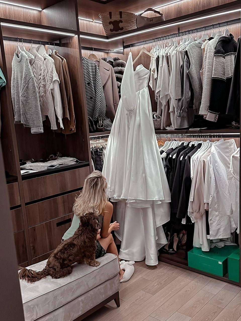 Бизнесмен опубликовал в сети свадебное платье избранницы, дав понять, что он и Валерия вплотную занимаются подготовкой к церемонии бракосочетания. На фото Валерия сидит в гардеробной и разглядывает свое белое платье.