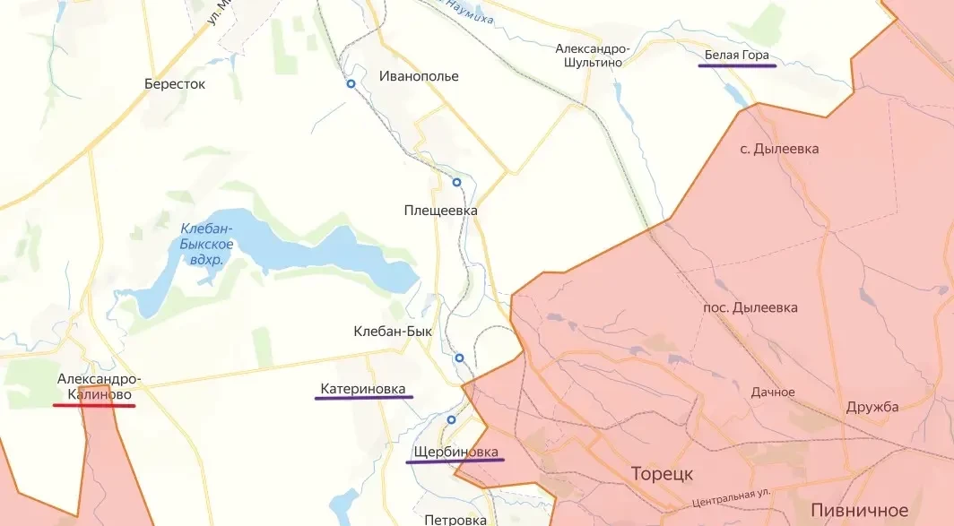 Идут ожесточенные бои в районе Катериновки, которая расположена немного западнее Дзержинска. Также в последние дни продолжается штурм Щербиновки. Основной натиск на этот населенный пункт производится с юга. А к северу от города в течение длительного периода идут бои в районе Белой Горы.