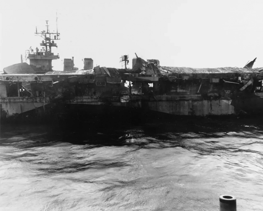 Повреждения авианосца USS Princeton (CVL-23)