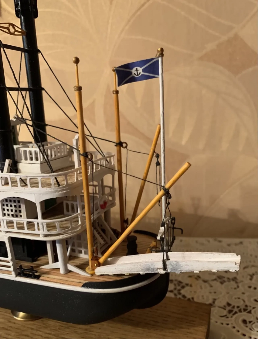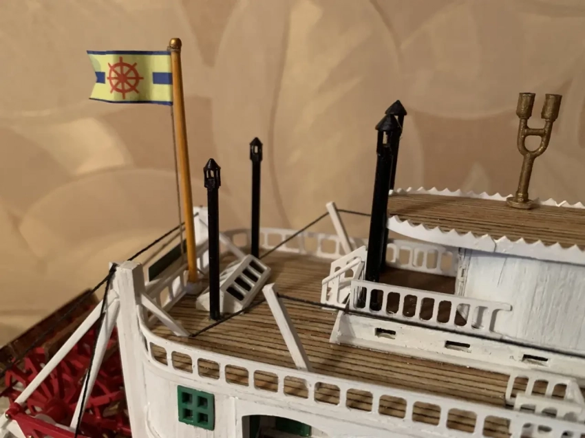 Причина популярности моделей миссисипских пароходов проста. В них нет «мучительного» в изготовлении такелажа парусного корабля, и к тому же это ведь еще и сугубо мирное судно, хотя модели именно военных кораблей во все времена пользовались наибольшей популярностью. И тем не менее… Мирный пароход – это тоже очень красиво!