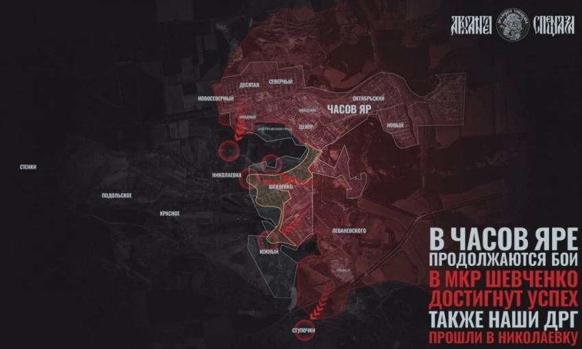 На Константиновском направлении российские войска ведут зачистку Ступочек, продвинулись в районе Новоспасского, в направлении Щербиновки, севернее Торецка и севернее Романовки, продолжаются встречные бои. ВС РФ имеют тактические успехи в восточной части Яблоновки, под контроль российских войск перешёл Попов Яр, продолжаются штурмовые действия в Русином Яру.