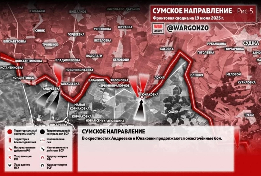 Карта боевых действий на Украине. Ситуация в зоне СВО на 19.07.2025