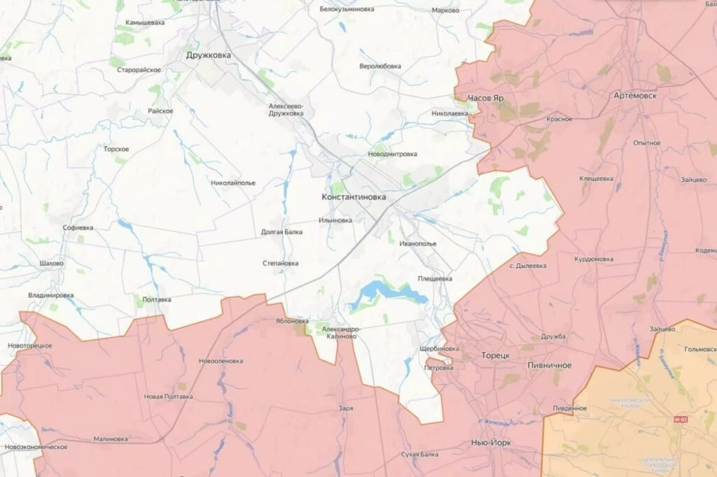 На западе Константиновского фронта ожесточенные бои в районе Яблоновки - Александро-Калиново. Армия России старается перерезать логистику ВСУ южнее Клебан-Быкского водохранилища, к которому приближается с востока, а также в районе Щербиновки. Центр и восточная часть Яблоновки уже под контролем наших войск. На Александро-Калиново наши напирают с северо-запада и юго-востока, западнее Катериновки выбивают противника из лесов. В Щербиновке наши зачищают южные позиции, пробиваются к центру. Позиции восточнее и северо-восточнее пока переходят из рук в руки. По последним данным, шахта им. Матроны Московской снова занята ВСУ, а вот севернее наши выбили ВСУ с позиций. На восточном фланге направления идут тяжёлые бои на участке Дылеевка-Курдюмовка-Андреевка.
