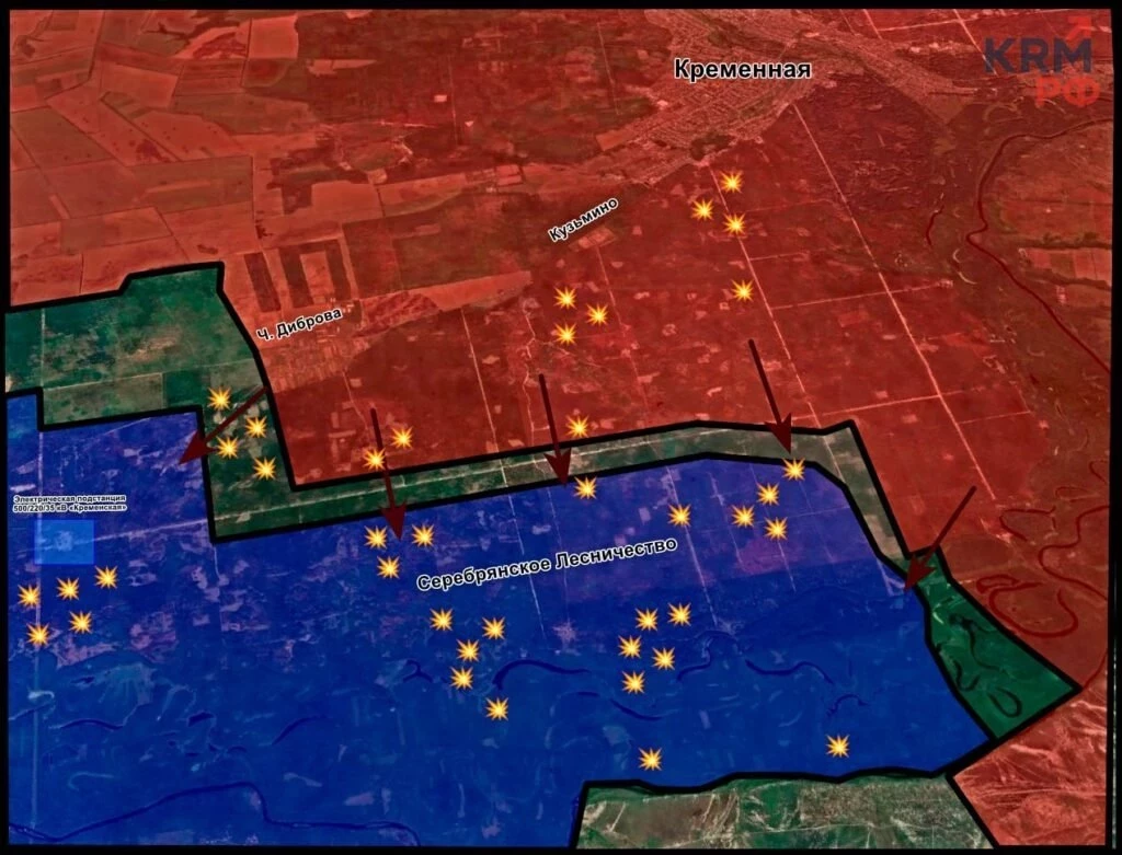 На Северском направлении южнее Ивано-Дарьевки ВС РФ зачистили карман, пробиваются к Выемке. Судя по видео ВСУ, наши ВКС и ТОС мощно бьют по их позициям в Серебрянском лесу.