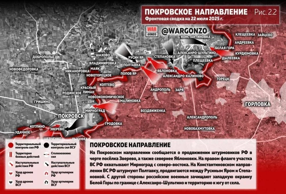 ВС РФ имеют успехи в районе Новоукраинки на Покровском фронте: свежие данные от 22.07.2025