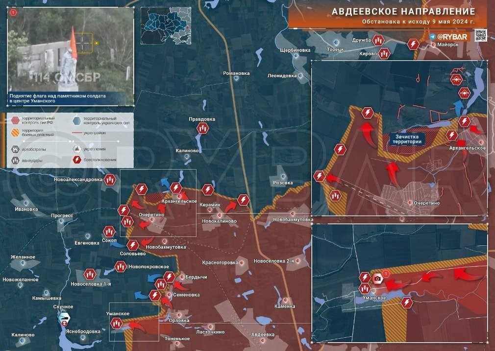 Ситуация под Авдеевкой на сегодня. Карта боевых действий от 10 мая 2024 года