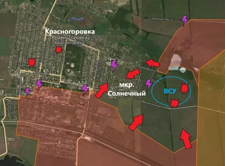 По мере того как российская армия продолжает давление, ситуация для украинских войск в юго-восточной части Красногоровки усложняется. Оборонные рубежи сжимаются, а возможности для маневра становятся всё более ограниченными.