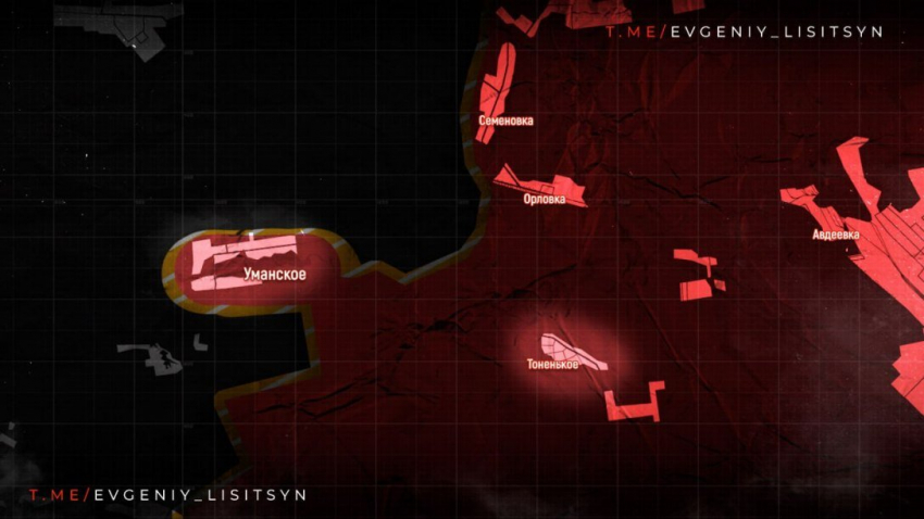 На Авдеевском направлении наши войска водрузили знамя Победы на памятник солдату ВОВ в Уманском. Продвижение на 1,5-2 км к Яснобродовке. Расширение зоны контроля к северу от Нетайлово, продвижение к Карловке, Новоселке Первой и Скучному. Бои в «кармашке» между Первомайским и Невельским, с целью выравнивания фронта. Продвижение к Новоалександровке. Соответствующие данные приводит военкор Евгений Лисицын в своём Telegram-канале.