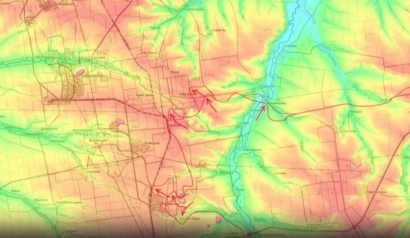 Вместе с этим военный блогер заострил внимание на продолжающемся наступлении ВС России по направлению к Доброполю и наши части пытаются охватить противника в районе Новошахово и Ивановки.