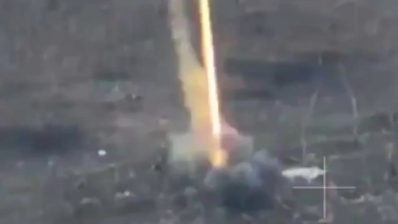 Применение СПБЭ «Мотив-3М» в ноябре 2023 г. В виде яркого луча запечатлён пролёт ударного ядра. Фото: Telegram / «Военная хроника»