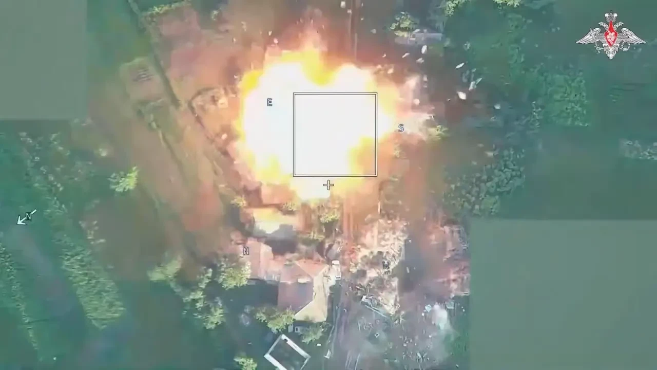 Поражение пункта дислокации и автотранспорта противника. Фото Минобороны РФ