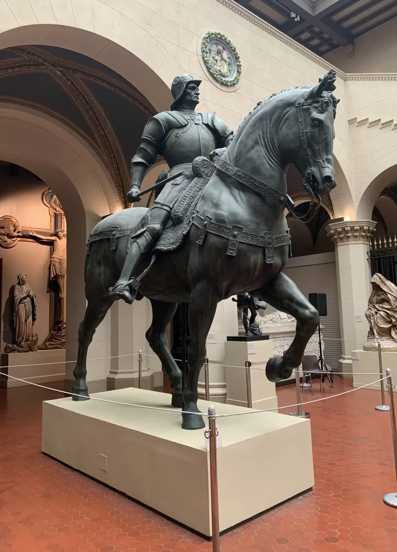 Ну и под конец едва ли не самые зрелищные скульптуры. Голого Давида Микеланджело я фотографировать не стал, а вот от того, чтобы не сфотографировать вот эту фигуру работы Андреа Вероккьо (1435/1436-1488), изображающую кондотьера Коллеони, удержаться просто не смог. Слепок. Гипс, тонированный под бронзу. Подлинник: 1479-1488; бронза; находится на площади Санти-Джованни-э-Паоло, Венеция