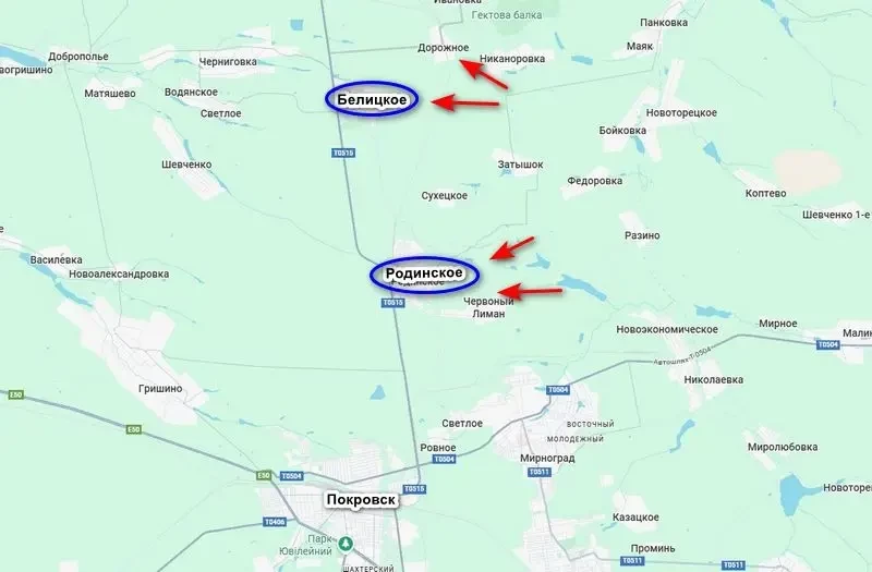 Противник признаёт выход ВС РФ на окраины расположенных к северу от Покровска городов Родинское и Белицкое