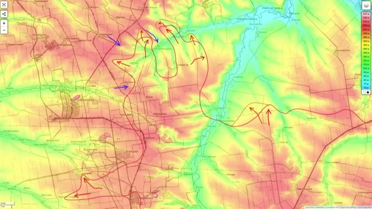Отмечаются попытки ударов как в лоб с направления Доброполья, так и фланговых обходов через Кутузовку. На отдельных участках ВСУ удалось вытеснить российские силы с дороги Доброполье - Краматорск, однако серьёзных результатов они не достигли.