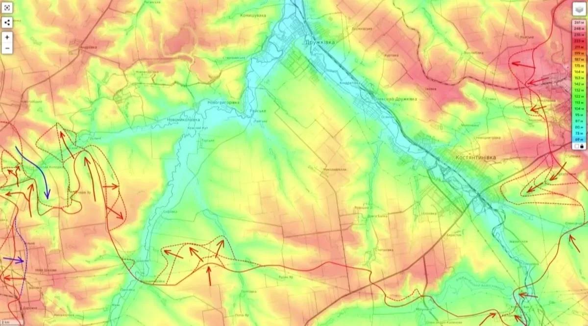 В последнее время становится все очевиднее, что бои на Константиновском направлении постепенно приобретают затяжной и изматывающий характер. ВС РФ продолжают наступательные действия одновременно на нескольких участках, используя тактику давления малыми штурмовыми группами с активной поддержкой артиллерии и дронов. При этом основное внимание сосредоточено на борьбе за узловые населенные пункты и пригороды Константиновки, на которые опирается оборона ВСУ на этом участке фронта.