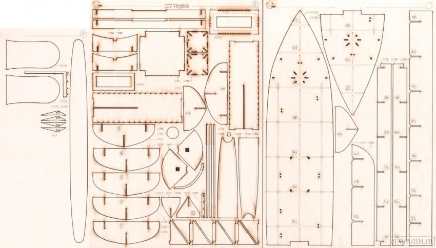 Отпечатанные детали и схема сборки броненосца «Вирджиния»
