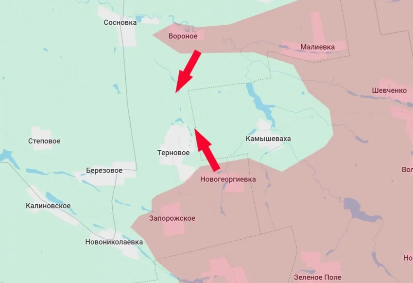 Такая конфигурация, при которой ВСУшникам из Камышевахи фактически некуда отступать, сформировалась после взятия Вооружёнными силами России под контроль населённых пунктов Малиевка, Вороное и Запорожское. Все три этих населённых пункта находятся на востоке Днепропетровской области.