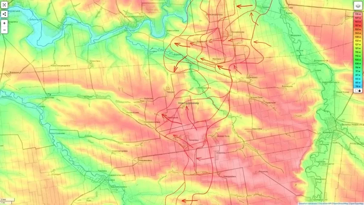 Одновременно развивается наступление на Новопавловку. После взятия под контроль населенного пункта Филия, ВС РФ продвинулись на северо-запад, подойдя к этому важному логистическому узлу ВСУ на расстояние 4-5 километров с юга.