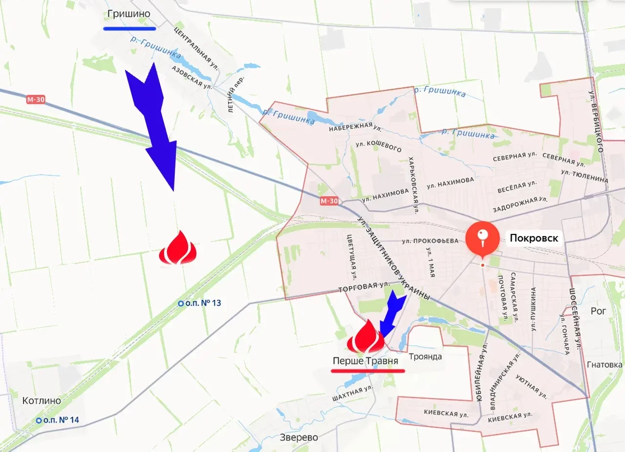 Противник двое суток предпринимал попытки контратаковать в районе Первого Мая (Першего Травня, Леонтовичей) – села, которое на неделе перешло под контроль армии России. Потеря этого села оголила позиции ВСУ на юго-западе и западе Покровска (Красноармейска), позволила перевести под контроль наших войск террикон на южной окраине города и вдобавок продвинуться к западным маршрутам снабжения Покровского гарнизона.