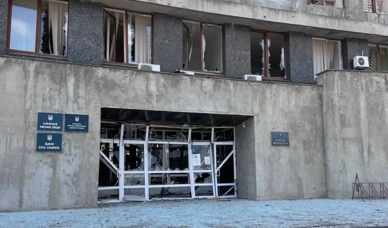 В Сумах нанесены повреждения зданию администрации. В том же здании размещается Сумская городская рада (горсовет). Противник заявляет о прилёте «Италмаса».