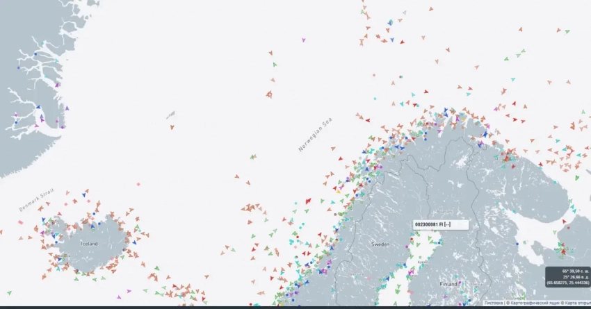 Вот что представляет собой сегодня Норвежское море. Это, сами понимаете, не южные моря типа Филиппинского или Южно-Китайского, тут такого оживления не увидеть.