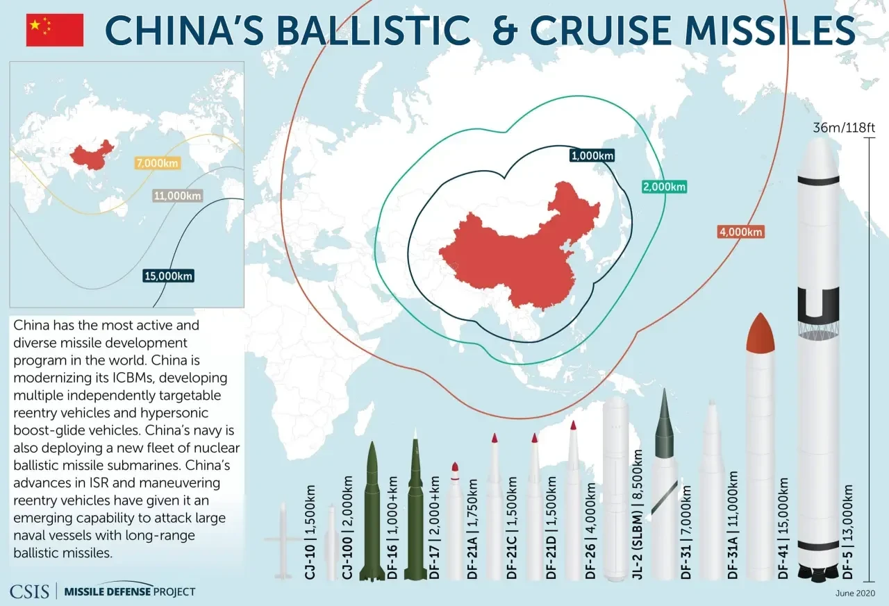 Судя по новой информации с крайнего парада, у Китая теперь есть девять различных версий наземных МБР: DF-5A, DF-5B, DF-5C, DF-27 (пока не демонстрировалась публике), DF-31A, DF-31AG, DF-31BJ, DF-41 и DF-61. Примечательно, что многие из ракет не обязательно представляют собой эволюционные усовершенствования, а существенно отличаются друг от друга: пять из них — мобильные, а четыре — шахтного базирования; три — оснащены ЖРД, четыре — твердотопливные, а наличие двух новых ракет ранее не отмечалось; как минимум одна из них оснащена разделяющимися головными частями индивидуального наведения (РГЧ ИН), как минимум одна — тяжёлым управляемым боевым блоком (HGV), как минимум одна — боеголовкой высокого класса мощности – 5 Мгт, а одна, возможно, даже обычной конвенциональной боеголовкой.
