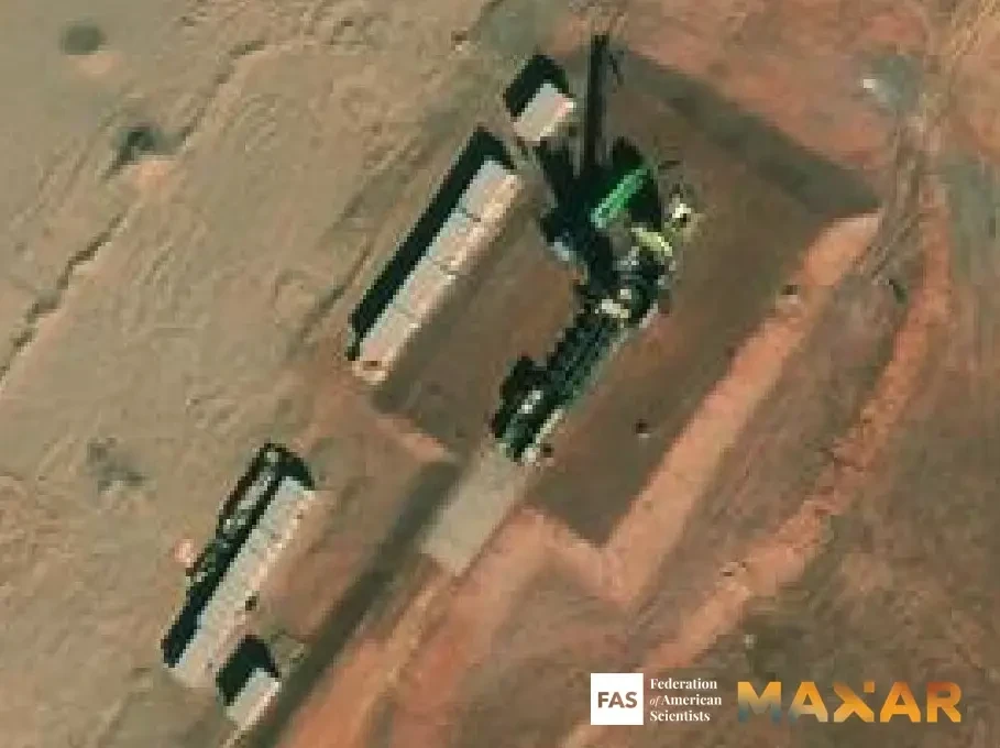 Возможный транспортер ракет DF-31BJ замечен в 2021 году во время отработки загрузки МБР в шахту на учебном комплексе «Цзиланьтай» на севере Китая