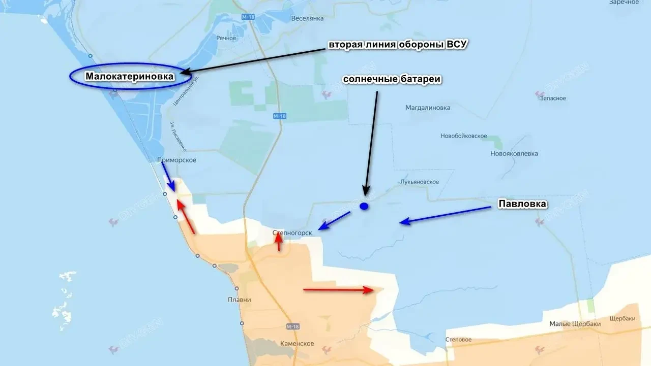 Противник подтягивает резервы, пытаясь остановить наших в Приморском. При этом вторая линия оборон у него уже подготовлена в районе Малокатериновки.