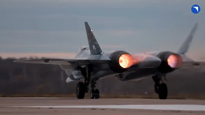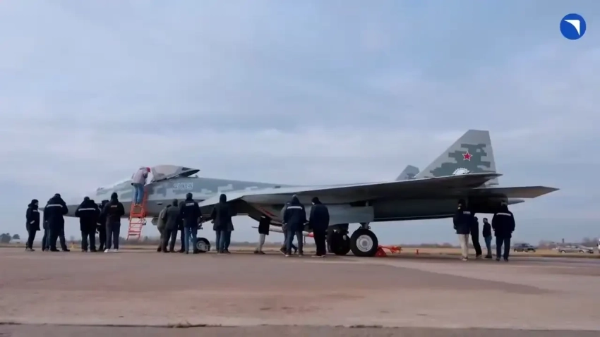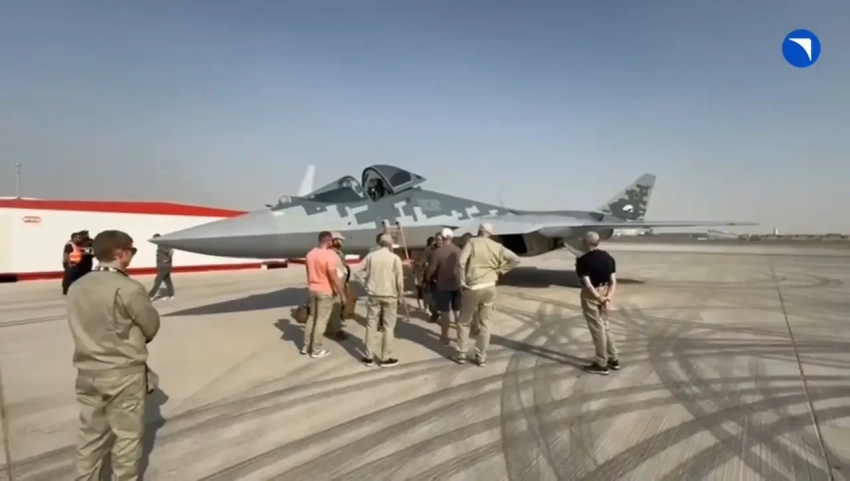 Су-57Э во время подготовки к вылету в ОАЭ