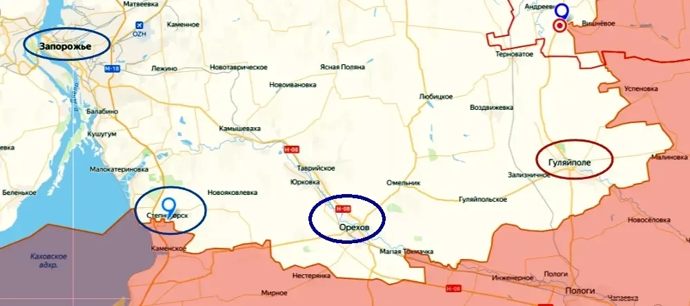 Данный населённый пункт расположен на левом берегу Каховского водохранилища примерно в 30 километрах к югу от города Запорожье. Это достаточно близко к ЛБС, но довольно далеко от Гуляйполя. Орехов расположен восточнее. Поэтому далеко не факт, что Зеленский побывал в самом поселке, где, как он пишет, «прошла встреча с воинами 128-й отдельной горно-штурмовой бригады», которая держит оборону на этом участке.
