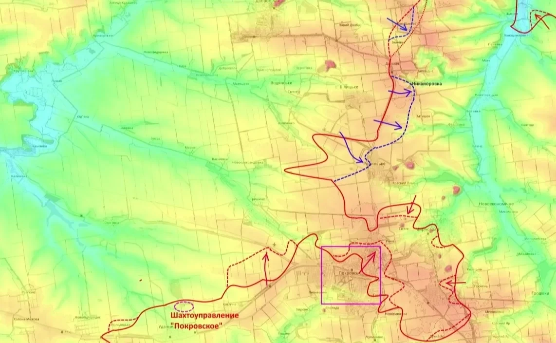 Разрезание «котла»: Идет операция по разрезанию группировки противника, находящейся между северо-восточными окраинами Покровска и Мирноградом. ВС РФ пытаются рассечь ее по южной части Мирнограда.