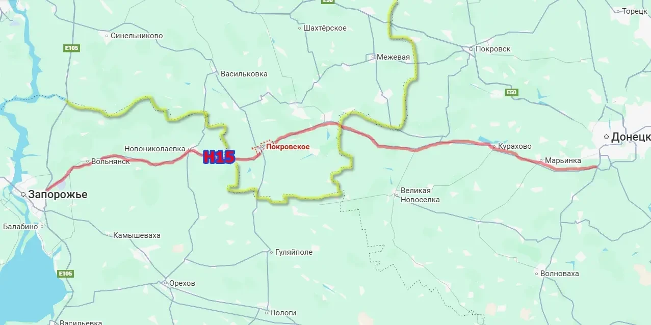 С выходом армии России к Отрадному появится возможность частичного огневого контроля и над такой важной для ВСУ автодорогой, как Покровское-Вольнянск-Запорожье. Это участок дороги Н15 Запорожье-Донецк, которая проходит через так называемый днепропетровский южный балкон.