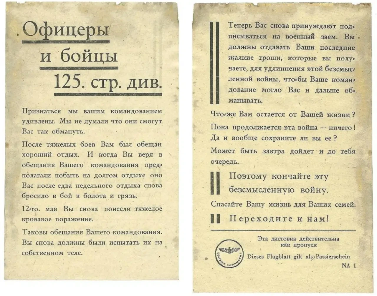 Листовки для перехода в плен