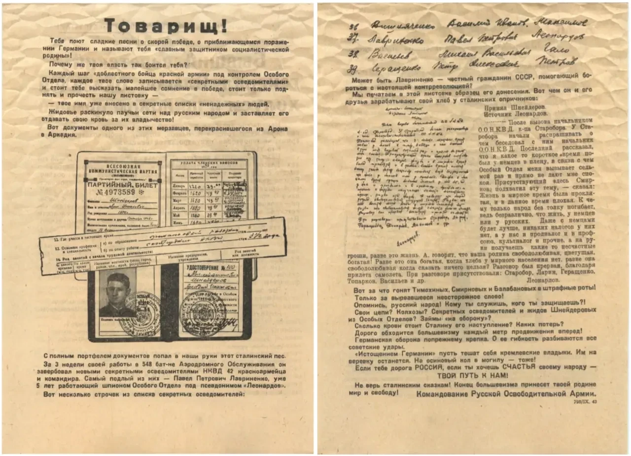 Ещё одна листовка с факсимильным изображением, настраивающая советских солдат против НКВД