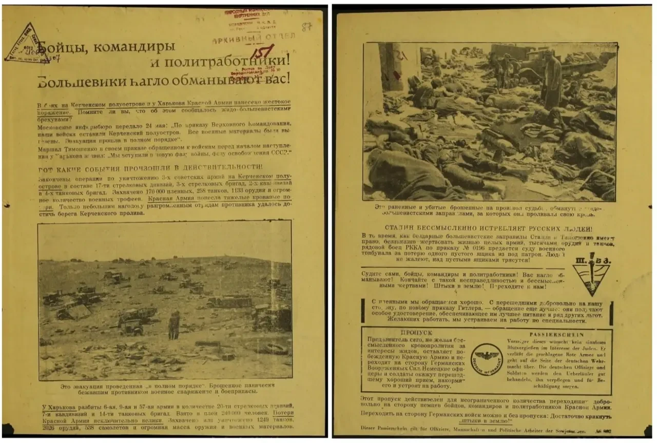 После таких заявлений напрашивалась необходимость дать со своей стороны некую «правдивую» информацию для советских солдат. Для этого периодически выпускались такие листовки, освещающие события в выгодном для немцев свете, или же вообще рассказывающие о событиях, которых не было.