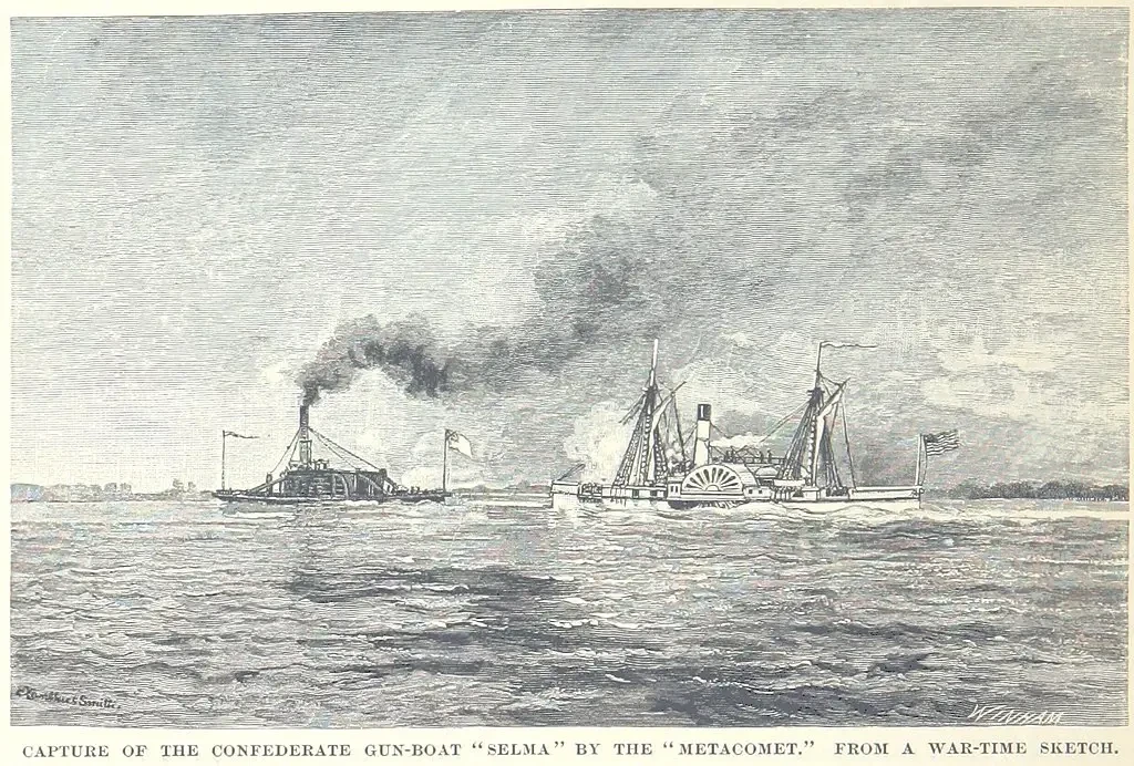 А «Метакомет» продолжал гнаться за «Селмой». Во время дождевого шквала корабли потеряли друг друга, но как только погода прояснилась, выяснилось, что «Метакомет» обогнал «Селму» и встал впереди неё, загородив путь к отступлению. Между канонерками началась яростная схватка. Но корабль южан уступал противнику и в скорости, и в вооружении. Поэтому, видя, что положение «Селмы» безнадежно, её капитан спустил флаг. После починки эта канонерская лодка уже в составе федерального флота продолжала действовать в заливе Мобил.