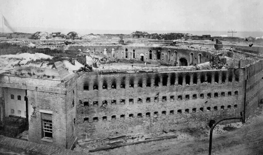 Форт Гейнс держался немного дольше, но также оказался в безвыходном положении. Войска северян высадились на острове и, пользуясь удобным рельефом, подвезли свои пушки к самым его стенам. После этого комендант гарнизона полковник Андерсон приказал начать переговоры о капитуляции и уже 8 августа сдался северянам вместе с гарнизоном в количестве 800 человек.