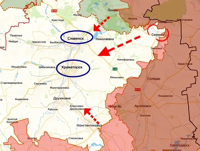 Панику добавляет бывший заместитель начальника Генштаба ВСУ генерал Игорь Романенко. По его мнению, российская армия реализует задачу выйти к Славянску и Краматорску не только с юга (Константиновка и Дружковка), но и с северо-востока со стороны Красного Лимана и Северска.