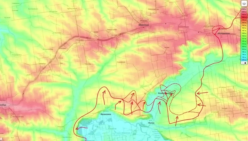 На Новопавловском направлении (район Великой Новоселки) российские части постепенно зачищают Новопавловку. Противник огрызается и пытается контратаковать, но наши войска успешно продвигаются по флангам, охватывая населенный пункт. После завершения штурма откроется путь на Межевую.