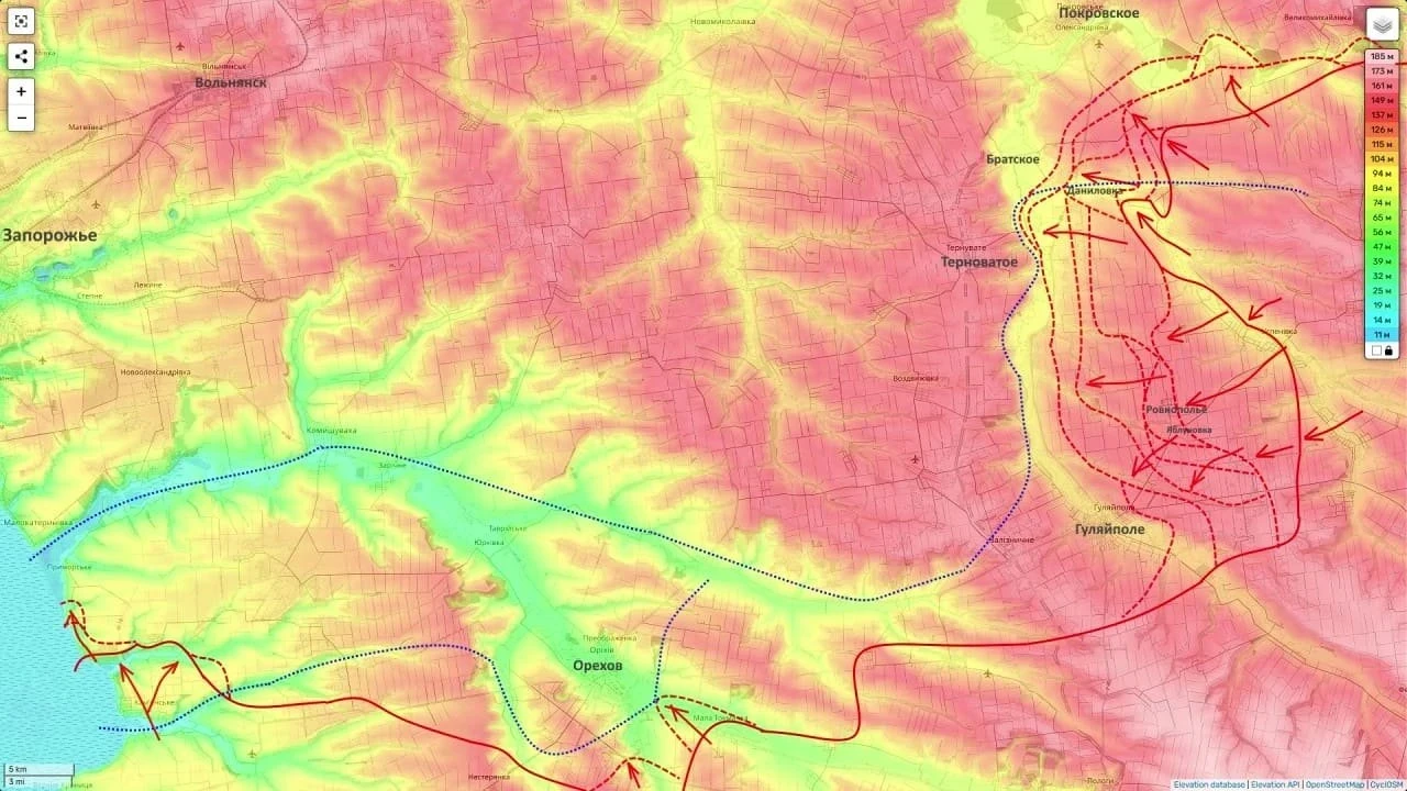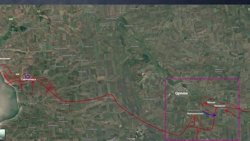 На южном участке Запорожского фронта - Степногорск, Приморское и Орехов - продолжается, как говорит аналитик, «медленное и ползучее» наступление.