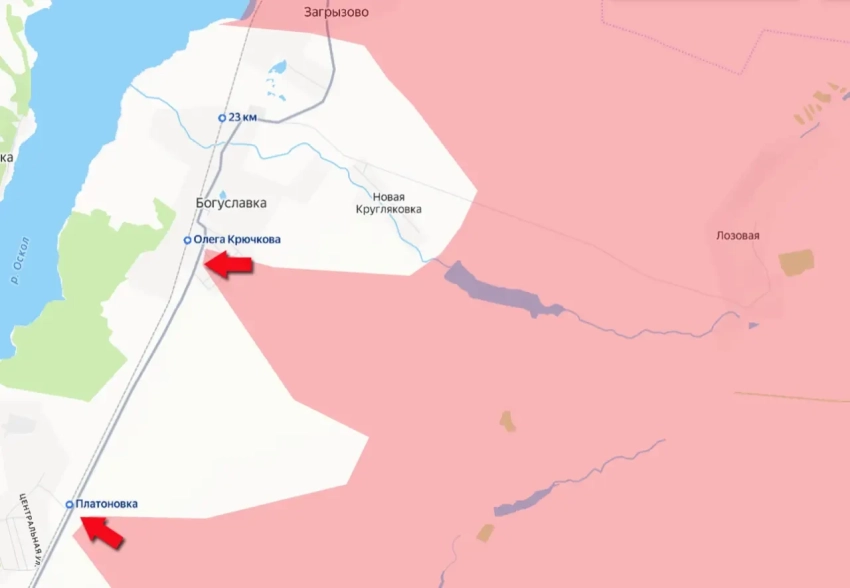 В результате наступательной активности российские войска вышли к ключевым железнодорожным станциям на левобережье реки Оскол. Речь о станциях Платоновка и Олега Крючкова. Это позволило разрезать остатки сил противника на указанном направлении на части, блокировав одну из таких частей в районе Богуславка – Новая Кругляковка.