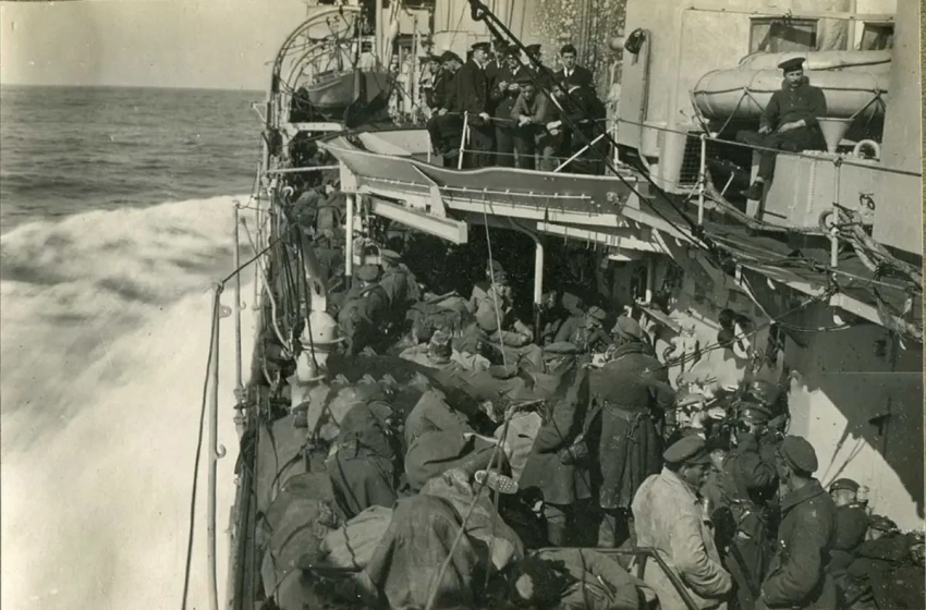 Новороссийск, белогвардейцы на английском крейсере «Калипсо»