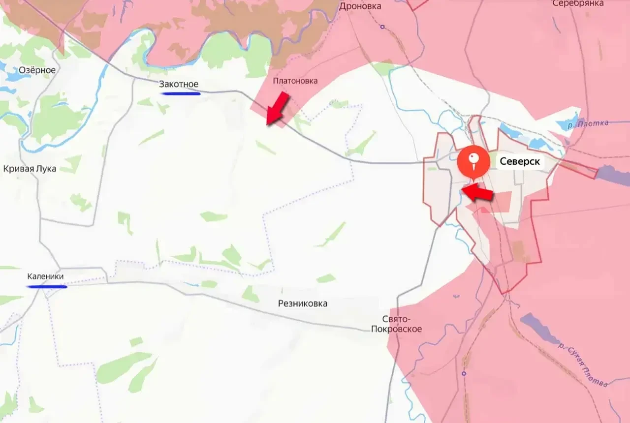 Штурмовики вышли к левому (восточному) берегу реки Бахмутка, разрезав северский гарнизон противника, находящийся в основной (левобережной) части города, на части. При этом в обеих частях в черте населённого пункта остающиеся отряды ВСУ блокированы не только российскими войсками, но и преградами в виде водоёмов, включая ту же реку Бахмутка.