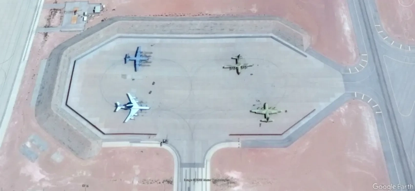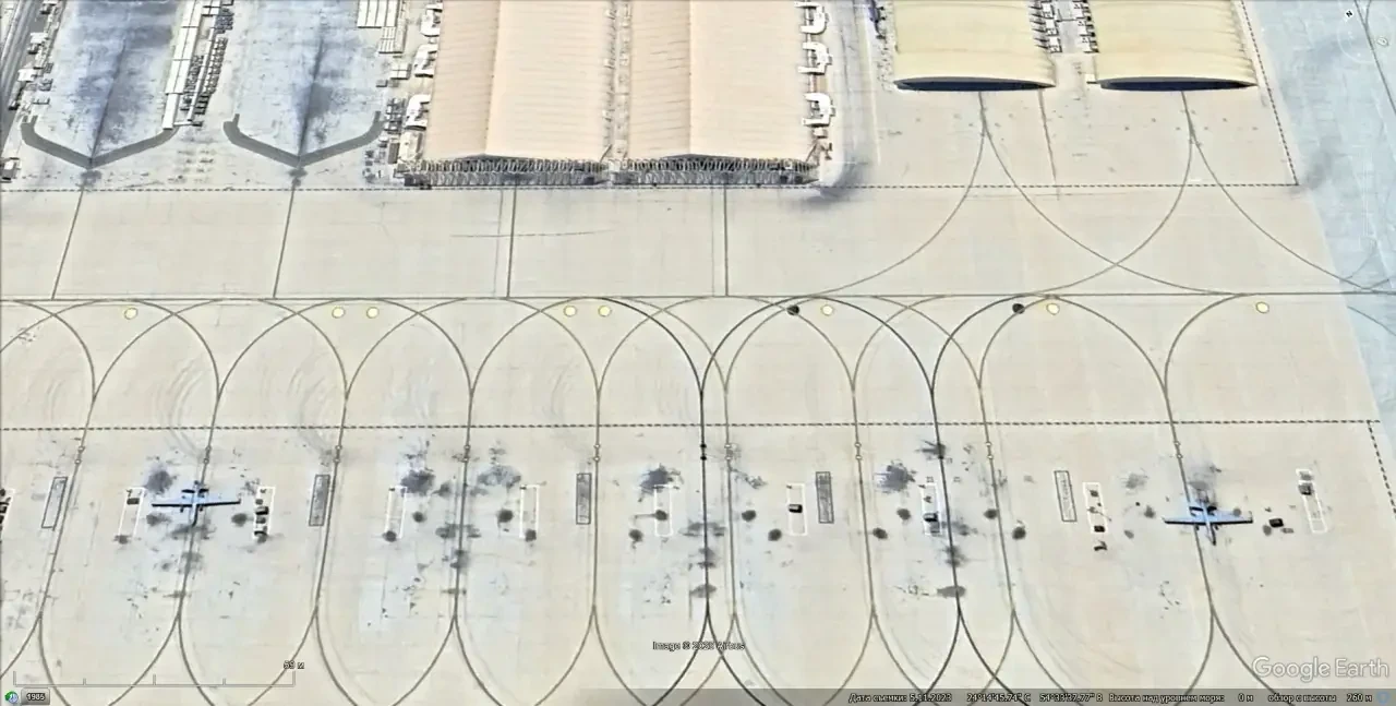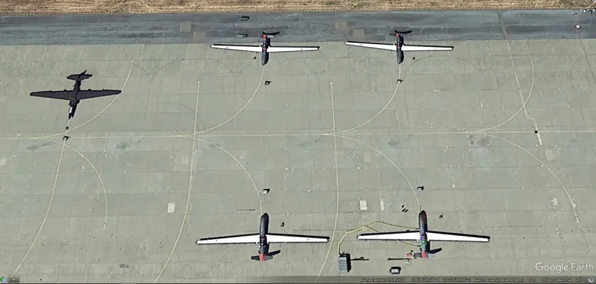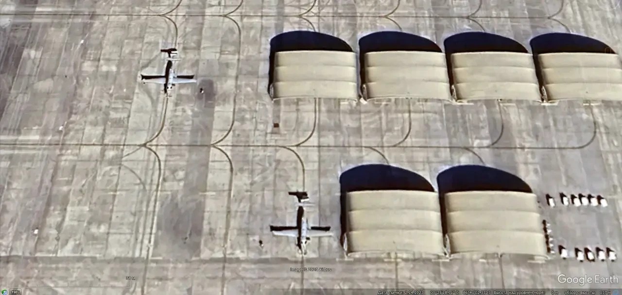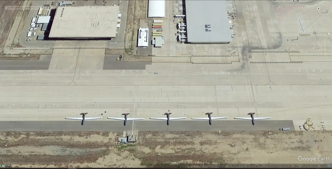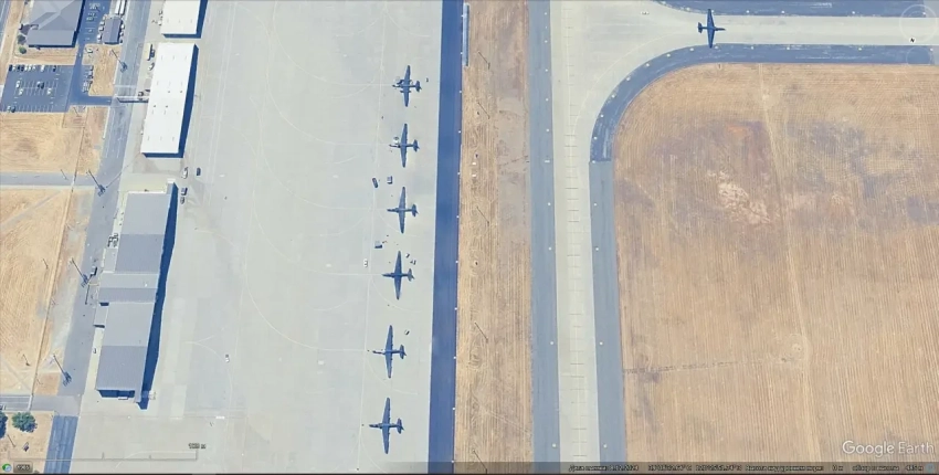 Спутниковый снимок Google Earth: самолёты Pilatus U-28A Draco на авиабазе Херлберт Филд. Снимок сделан в феврале 2023 года