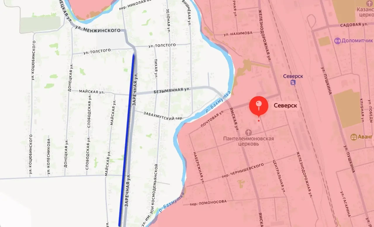 Стремясь не дать российской армии форсировать Бахмутку, противник вынужден выстраивать новую линию обороны уже в западной части города. Основным рубежом обороны к настоящему моменту стала улица Заречная – наиболее протяжённая в указанной части Северска.